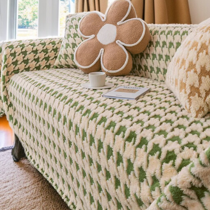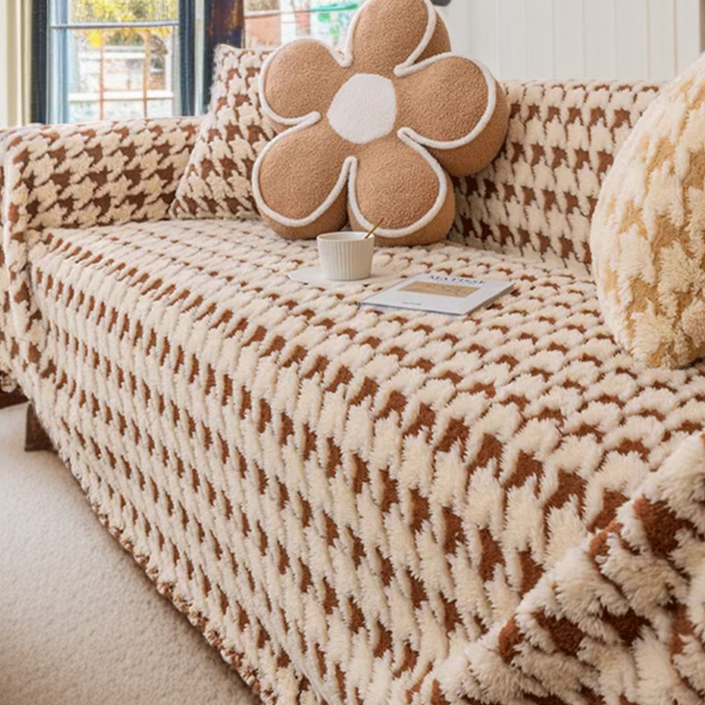 タイガーバードパターンウールカバーフルカバーソファタオル冬オールインクルーシブユニバーサルぬいぐるみソファブランケット千鳥格子ウールカバー